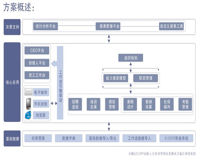 开设的学习课程包括人事管理、能力素质模型、绩效管理、招聘与培训管理、薪酬管理以及全方位的员工自助平台等,主要业务架构如下图所示: